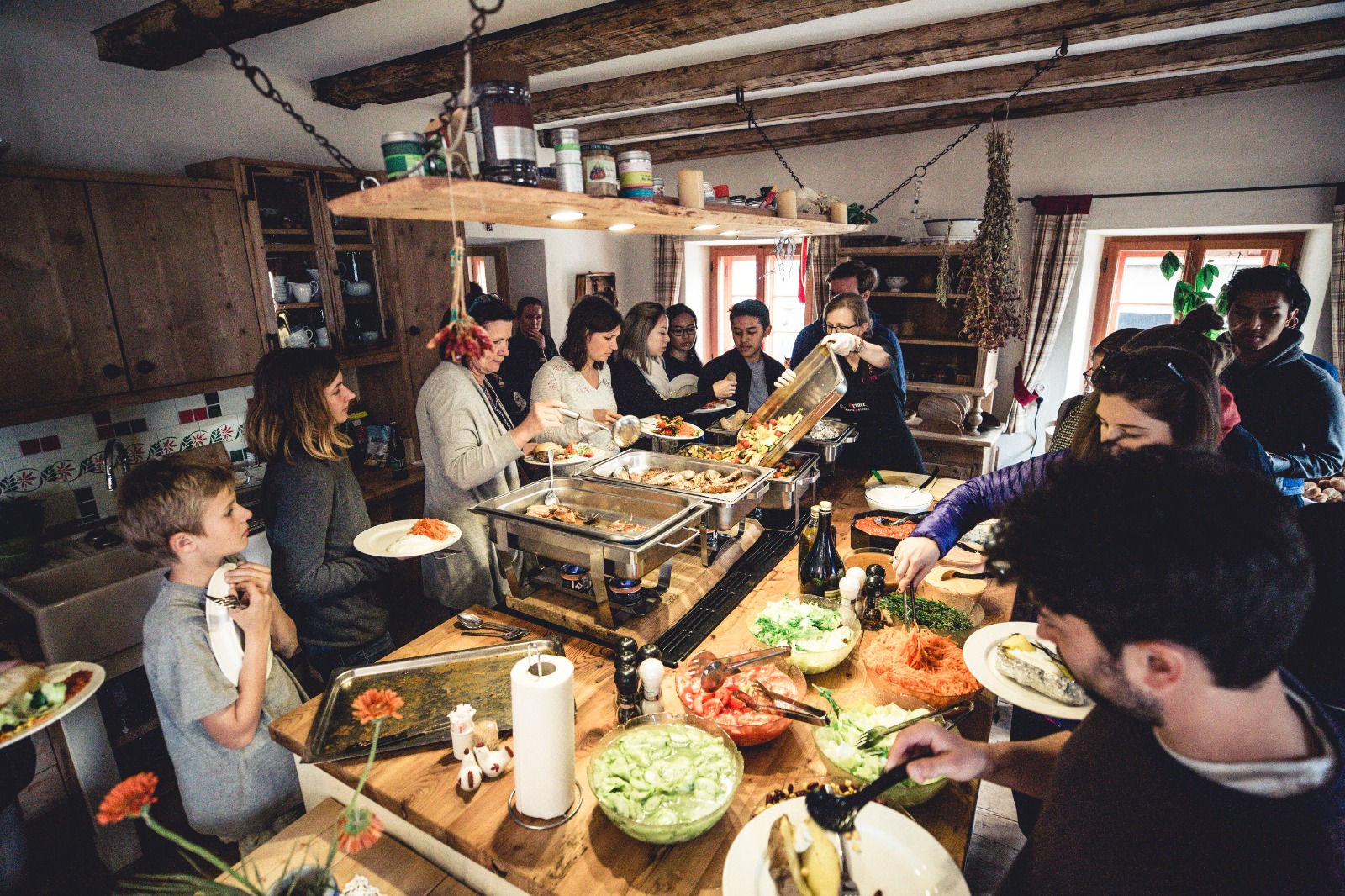 - In der rustikalen Küche können Gruppen gemeinsam auf einem großen Gasherd kochen und essen.